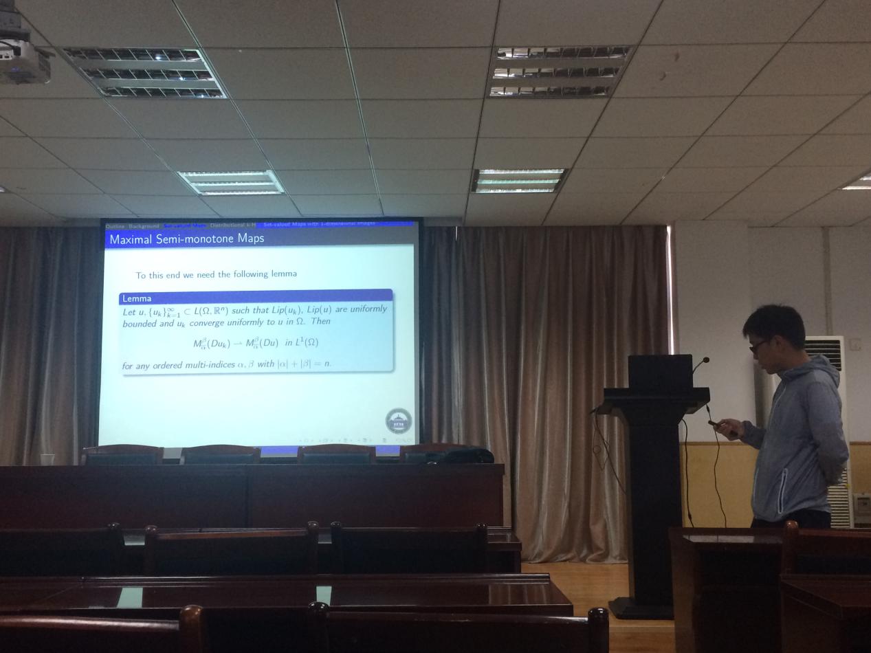 涂强博士结合自己的研究工作,介绍了集值映射的图的性质,并展示了一些相关应用。他的讲解深入浅出,形象生动,思维严谨,给我校师生很多的启示。在报告结束后与师生展开了讨论,解答了师生提出的很多问题。