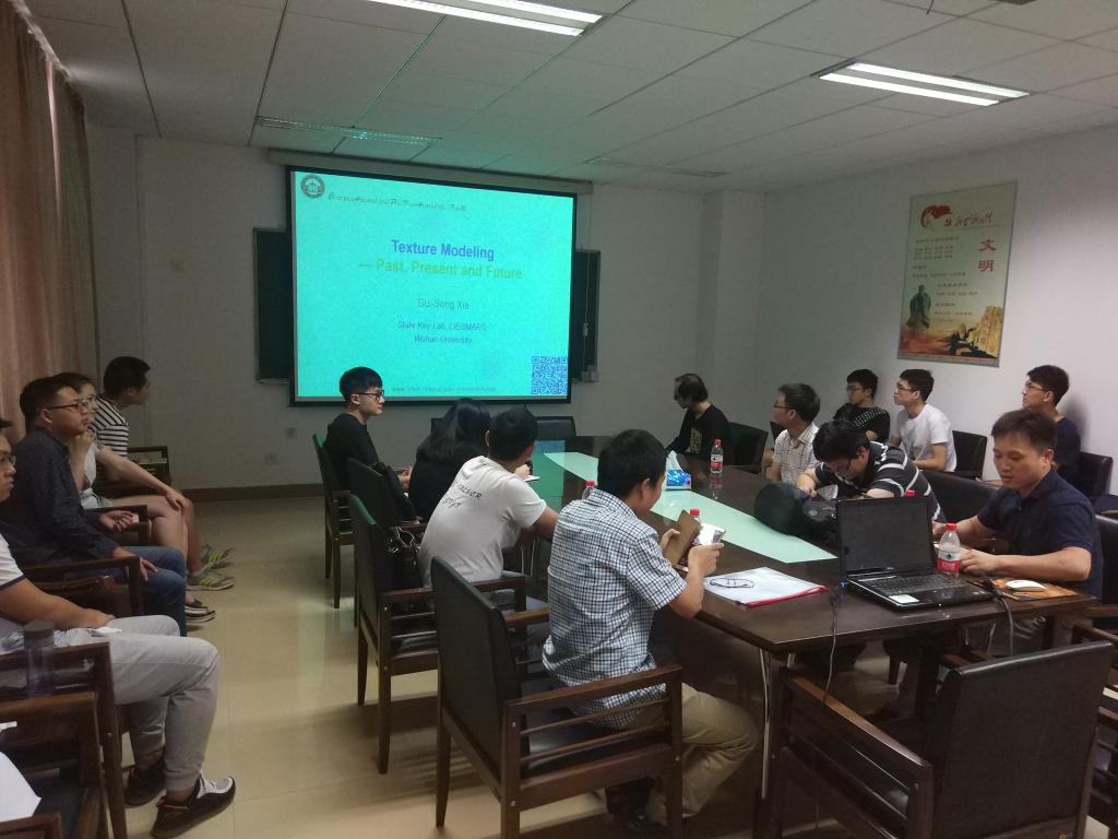 报告中,夏桂松教授讲述了图像纹理建模的前世今生,系统总结了各种纹理分析与合成方法;张洪艳教授讲述了低秩稀疏模型及其在高光谱图像分析中的应用;罗甫林博士系统总结了各种稀疏流形学习方法,并介绍了其研究的各种监督和半监督稀疏判别图模型;叶志京博士介绍了函数型数据分析模型及其在高光谱图像主成分分析、判别分析等方面的应用。