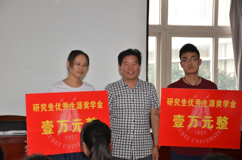 会议的最后,院党委书记游春林为2017级硕士新生陈思维和2017级博士新生庞婷婷发放了优秀生源奖学金。
