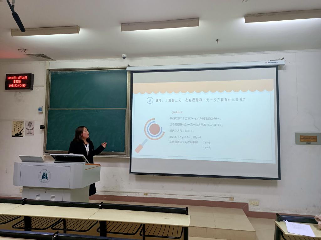 比赛过程中中,8名选手运用几何画板、课件展示等新媒体技术与传统板书内容相结合,将一些复杂的公式和理论转化成了直观易懂的内容。评委们指出,参赛选手们表现出色,讲课效率高,将单项的课堂传授模式变为交流模式,在运用多媒体技术提高课堂教学质量的同时保持了较活跃的课堂氛围。