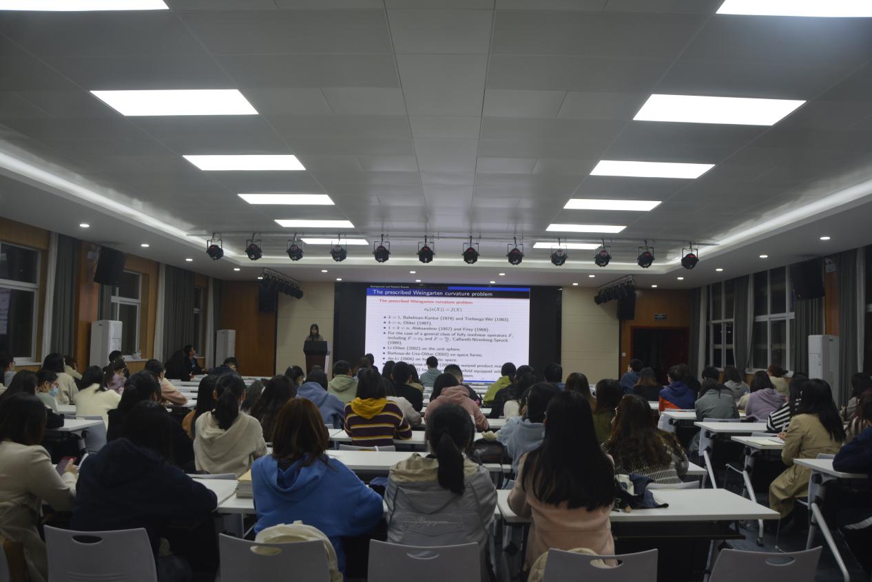 本次沙龙活动邀请了2019级硕士研究生陈晓娟作为主讲人,为大家带来了精彩的学术报告以及经验分享。由向妮老师担任活动指导老师为主讲人的报告做出总结和补充。本次活动的主题为“专业学术报告,学习经验分享”。活动开始,主讲人陈晓娟做了关于《A class of Hessian quotient equations in Euclidean space》的学术报告,和大家分享该论文的大体框架,同时也和大家分享了自己的学习经验。对于研究生阶段的学习,她给大家分享了自己的三点经验:1、学习态度:梦想决定态度,态度决定一切。2、学习方法:预习、复习,做好笔记,养成读文献、写论文的好习惯。3、合理安排时间:列出时间规划表,平衡好学习、生活和娱乐,养成良好的生活习惯,作息规律。