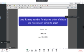 浙江师范大学金泽民老师的报告题目是《Anti-Ramsey number for disjoint union of clique and matching in complete graph》。金泽民老师首先向大家介绍了报告相关的概念以及研究背景,接着向大家报告了他们团队关于主图为完全图,客图为团和匹配的不交并的Anti-Ramsey number的最新研究成果。金泽民老师的讲解非常详细,思维严谨,极大鼓舞了青年教师和学生们的学术热情,给大家带来了很多启示。