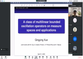 2023年4月21日上午,北京师范大学薛庆营教授应邀为我院相关专业的教师与研究生作了题为“A class of multilinear bounded oscillation operators on measure spaces and applications”的线上学术报告。