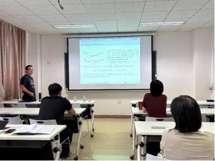 报告中,刘佳堃教授首先梳理了有关Monge-Ampère方程的一些基本概念和研究背景,然后详细讲解了在严格凸而非一致凸域上Monge-Ampère方程Dirichlet问题解的全局Hölder梯度估计的证明思路,并指出该问题在研究具有可测系数的偏微分方程、最优化、随机控制和计算几何中均有重要应用。报告最后,刘佳堃教授就报告中的证明细节问题与大家进行了深入的交流讨论,现场学术氛围浓厚。大家都表示刘佳堃教授讲解细致丰富,深入浅出,获益匪浅。