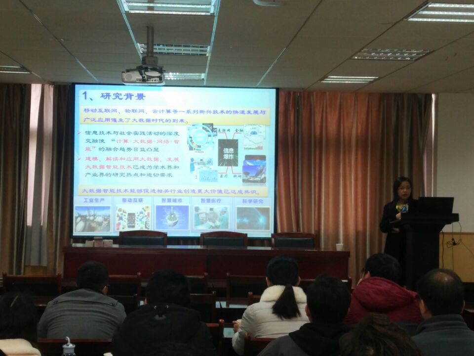 报告中,王教授首先向我们大家展示了她们团队近来所做的科研工作以及研究成果。之后,王教授又向我们详细介绍了统计学习理论、支持向量机、粒度计算理论以及主动学习方法等理论,以及这些理论之间的有机结合,如何利用新的模式分析与处理技术进行大数据的优化建模。最后,王教授提出了几类加速算法,提高了对于大规模、深层次、多类别、非平衡等复杂数据的高效学习和泛化能力,又以自己所做的一些实验效果,向我们更加直观的展示了新算法的优势。