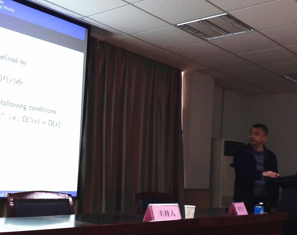 伍火熊教授在报告中介绍了包括模空间,Besov空间,Triebel-Lizorkin空间和Wiener amalgan空间在内的一些函数空间之间的一些嵌入关系,并给出了这些嵌入关系的最佳条件。周疆教授介绍了利用Calderon-Zygmund算子来刻画BMO空间,Lipschitz空间和Morrey空间的方法。