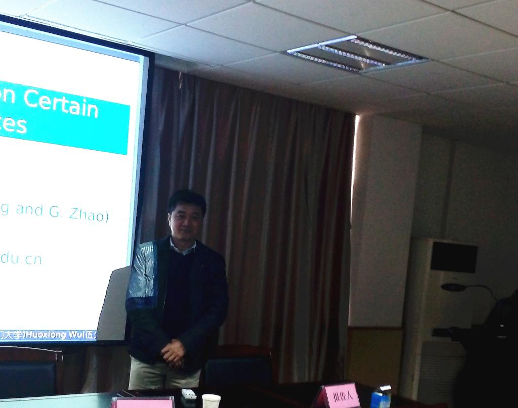 3月18日下午,厦门大学伍火熊教授和新疆大学周疆教授应邀来访我院,分别为学院师生做了题为“Inclusion Relations on Certian Function Spaces”和“Characterization of BMO space via the weak boundeness of Calderon-Zygmund operator”的学术报告。