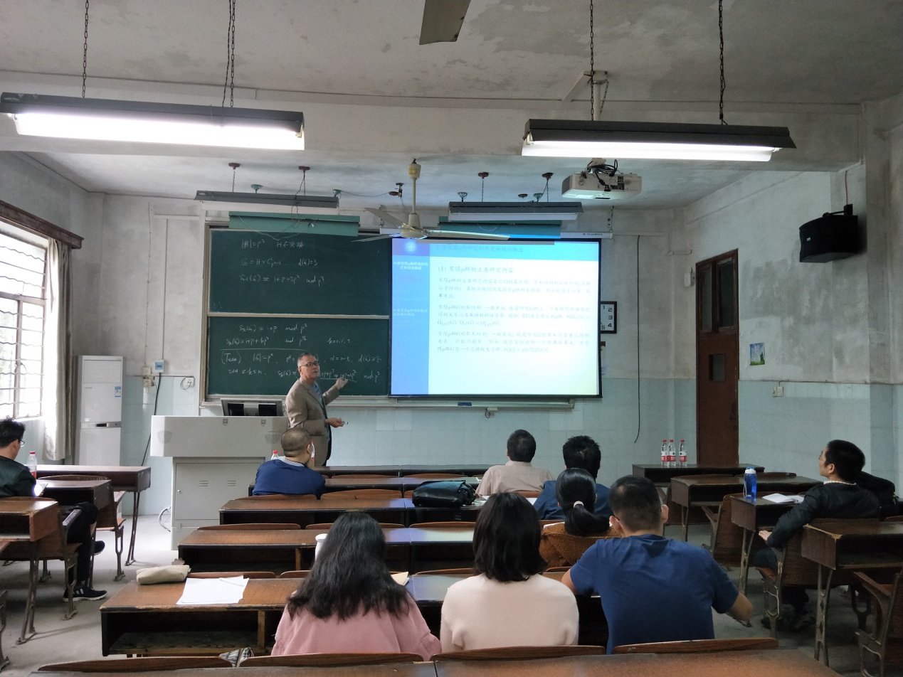 张勤海教授做了题为“中国有限p-群研究的历史和现状”的报告,报告以张教授自己所著的《有限p-群构造》一书的内容作为背景,讲述了有限p-群在有限群中的重要地位,例举了国外p-群的主要专著,并且针对有限p-群的主要研究内容,包括:幂结构、算术结构、正规结构、p-群自同构及特征标及表示等介绍了中国有限p-群研究的历程,重点介绍了现当代几位著名学者及山西师大群论团队的工作及成果,最后给出有限p-群的研究现状和对未来的展望。