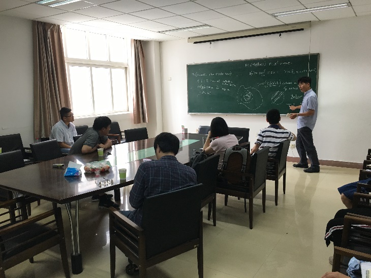 丰德军教授谈到了自相似集,自仿射集和自共形集的厚度与它是否在超平面上的关系等相关问题。其精彩的内容引起了在场师生的极大兴趣。