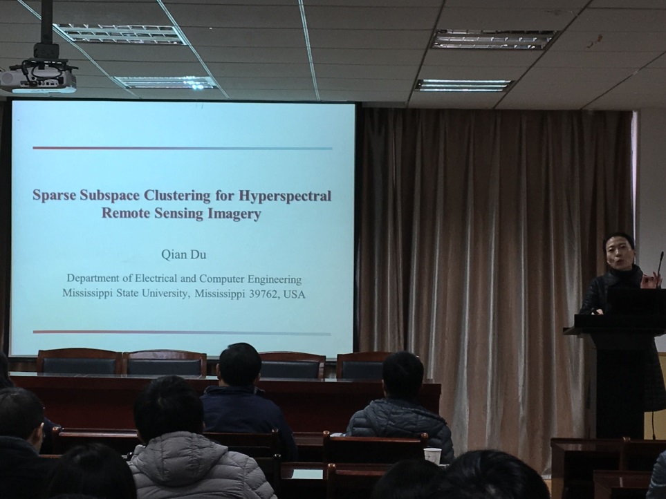 12月5日上午,美国密西西比州立大学Qian Du教授应邀来访我院,在院201报告厅为相关师生做了题为《Sparse Subspace Clustering for Hyperspectral Remote Sensing Imagery》的学术报告。