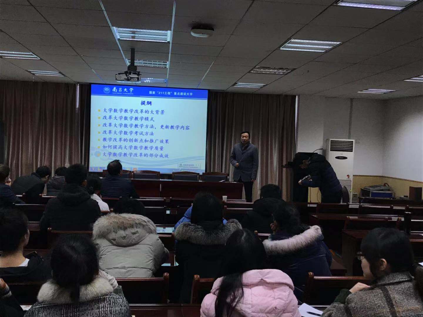 12月5日下午,南昌大学朱传喜教授应邀来访我院,在院201报告厅为学院师生做了题为《大学数学教学改革的研究与实践》的报告,报告由学院的邹斌教授主持。来自应用统计、应用数学、计算数学等相关专业的教师、博士和硕士研究生参加了本次学术报告。