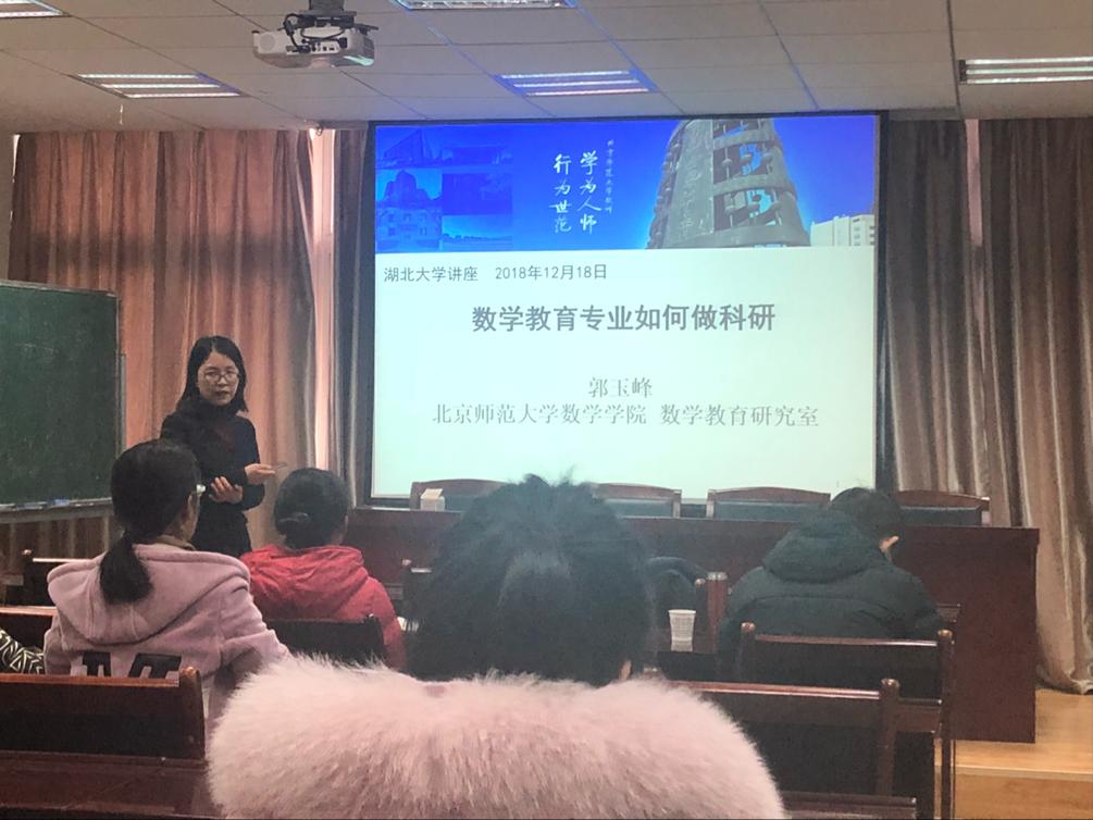2018年12月18日下午,北京师范大学郭玉峰教授应邀来访我院,在院201报告厅为相关师生做了题为《数学教育专业如何做科研》的学术报告。