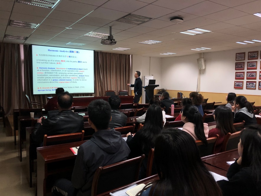 报告中,杨大春教授介绍了调和分析的基本知识和几种常见的函数空间,如Lebesgue空间、Banach空间、BMO空间、Hardy空间等,并介绍了其课题组在实变量函数空间方面的相关研究工作。孙文昌教授主要介绍了框架、Riesz基相关的研究工作。