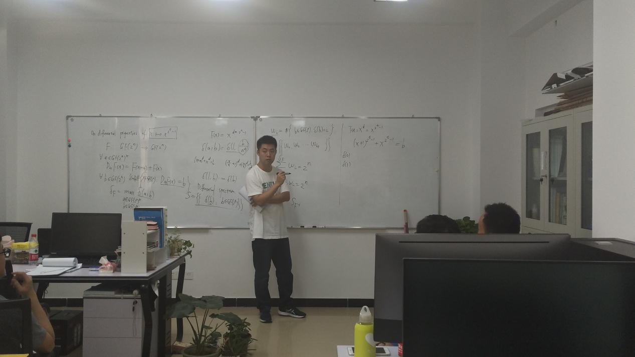 报告详细地介绍了对称密码中关于差分均匀度的一些问题,主要介绍了有限域上一些4差分置换多项式的差分谱的最新研究成果,学术动态以及发展趋势。报告后与老师同学们展开了热烈的讨论,阎老师的报告思路清晰,内容丰富,让大家受益颇丰。
