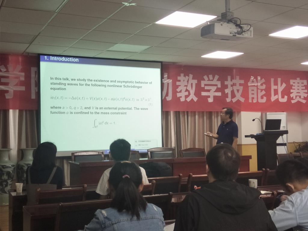 2019年10月14日下午,江西师范大学杨健夫教授应邀来访我院,并为相关专业的教师与研究生做了题为“Normalized solutions and mass concentration for supercritical nonlinear Schrödinger equations”的学术报告。
