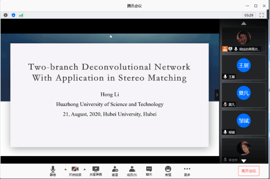 李红教授的报告题目为《Two-branch Deconvolutional Network With Application in Stereo Matching》。报告首先提出了一种新颖的双分支反卷积网络(TBDN),它可以提高传统反卷积网络的性能并降低计算复杂度。并设计了一种可行的迭代算法来求解TBDN模型。最后通过构建视差估计网络,介绍了TBDN在立体声匹配中的应用,并在四个常用数据集上的大量实验结果证明了所提出的TBDN的效率和有效性。