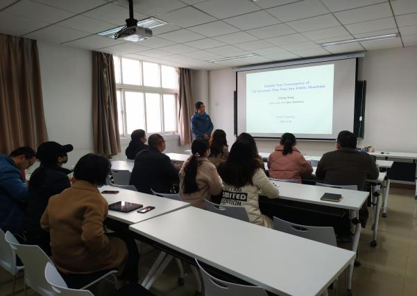 2020年11月30日上午,厦门大学宋翀教授应我院陈立老师邀请,作线下学术报告。报告在数统学院203报告厅举行,由陈立老师主持,来自我院几何团队的教师、研究生10余人参与了报告的听取和讨论。