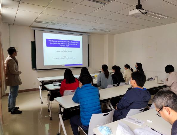 2021年3月26日上午,华中师范大学刘磊教授应我院陈立老师邀请,作线下学术报告。报告在英国365集团203报告厅举行,由陈立老师主持,来自我院几何团队的教师、研究生10余人参与了报告的听取和讨论。