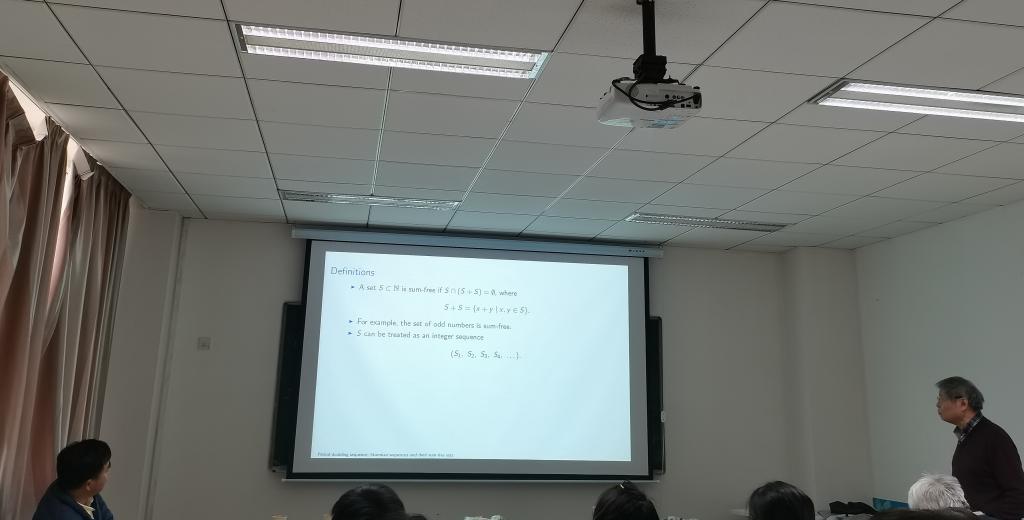 文志雄教授在这次报告中首先介绍了sum-free sets的定义,然后给出了一些sum-free sets的例子,介绍了Binary sequences to sum-free sets及如何求得。最后,介绍了一些应用,并且提出了一些未被解决的问题。其精彩的内容引起了在场师生的极大兴趣。