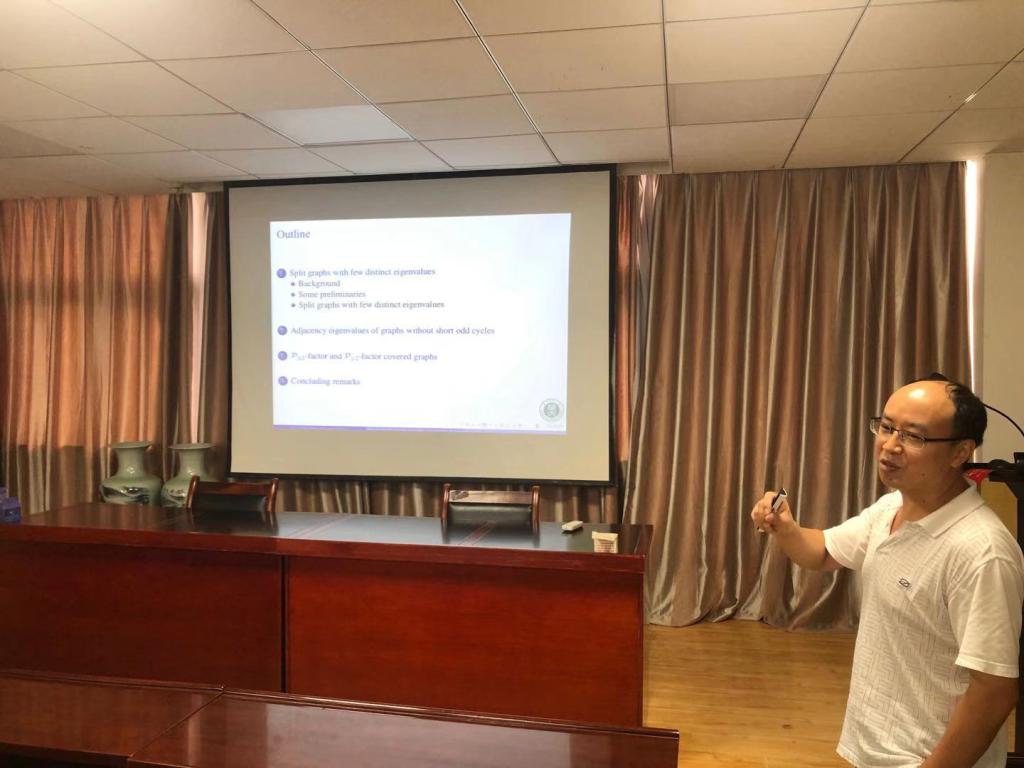 2021年7月12日,华中师范大学胡智全教授和李书超教授应邀来访我院,并在学院201报告厅分别作了题为《Spanning trees with given number of leaves in agraph》和题为《On split graphs with three or four distinct (normalized) Laplacian eigenvalues》的学术报告。