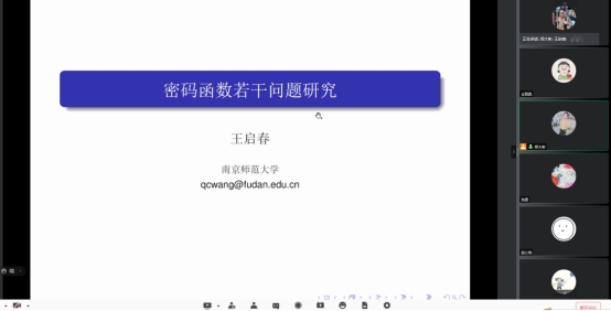 2021年10月11日上午,南京师范大学王启春教授应邀为我院师生于腾讯会议作了题为《密码函数若干问题研究》的学术报告。