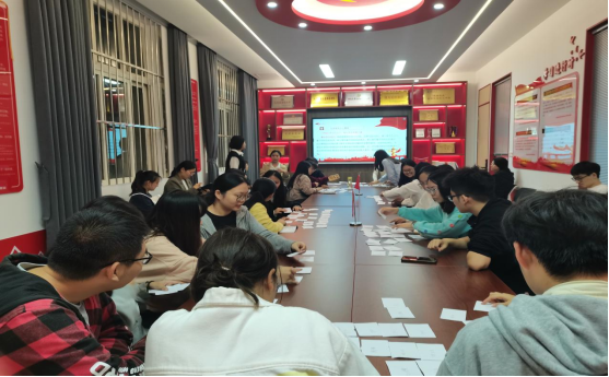 会上支部书记刘露同志通报了到会情况,带领全体党员奏唱国歌、重温入党誓词、通报党费交纳情况并带领大家集体学习党章。随后,张道燕同志以解读爱国主义内涵为开端进行了领学,带领大家一同观看《党的百年历史》视频,并以视频中的历史事件为线索,引导在场党员进行“记忆卡片”拼图,在活动中提升党支部的向心力和凝聚力,让全体党员从党的红色历史中感受红色精神的感召力。