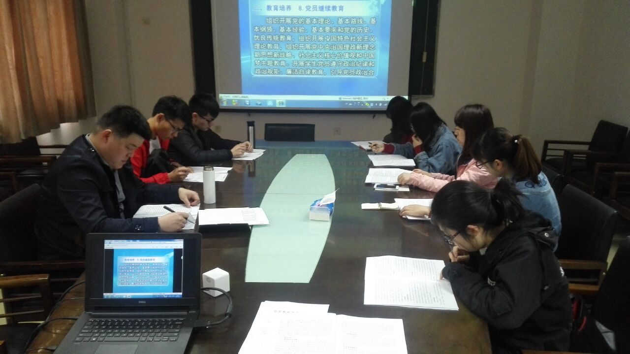 4月11日中午,在学院203会议室,学院各学生党支部支委会集体学习了《普通高等学校学生党建工作标准》。院党委副书记陆伟主持并指导了学习。