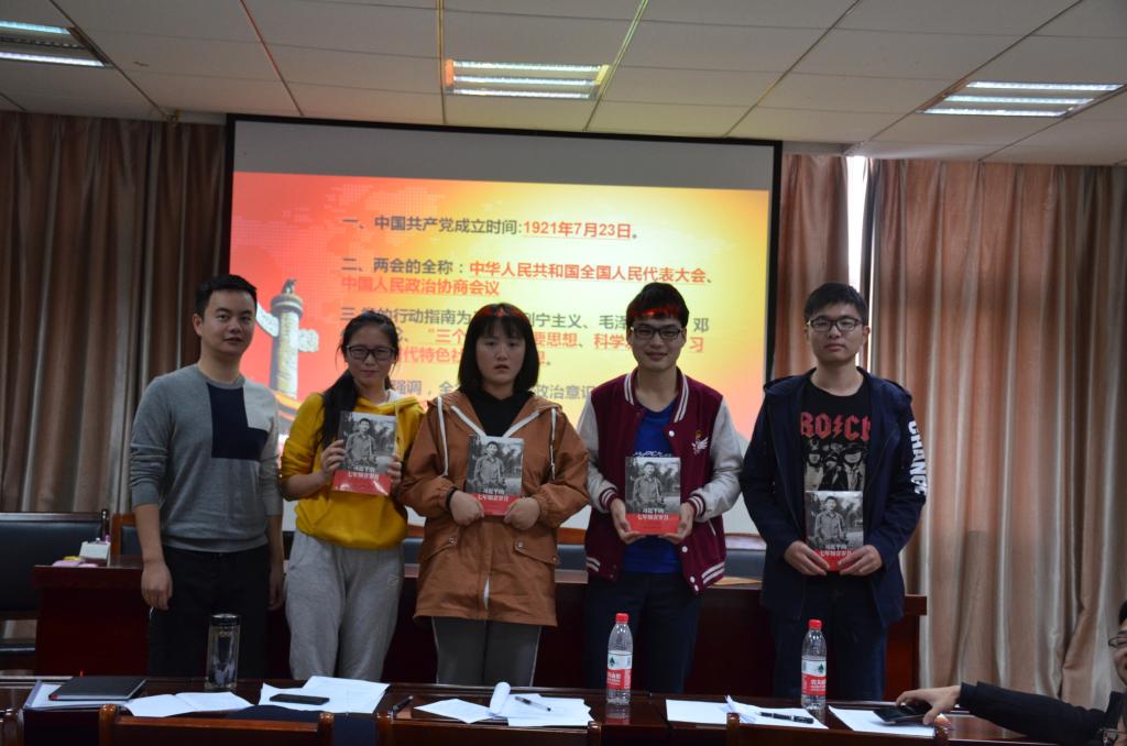 数统学院团委将习近平总书记在党的十九大的重要讲话整理成册,并发放到每个参与人员手中。全体成员左胸口都佩戴着团徽,交流会伊始,全体起立齐奏团歌,集体观看党的十九大相关视频并学习相关理论知识。团委老师周杰总结了党的十九大开幕会习近平总书记讲话内容,将其概括为“成就”和“变革”,并分享看完党章的启发,告诉学生要学习习近平总书记知青时期的精神,身先士卒,树立榜样。