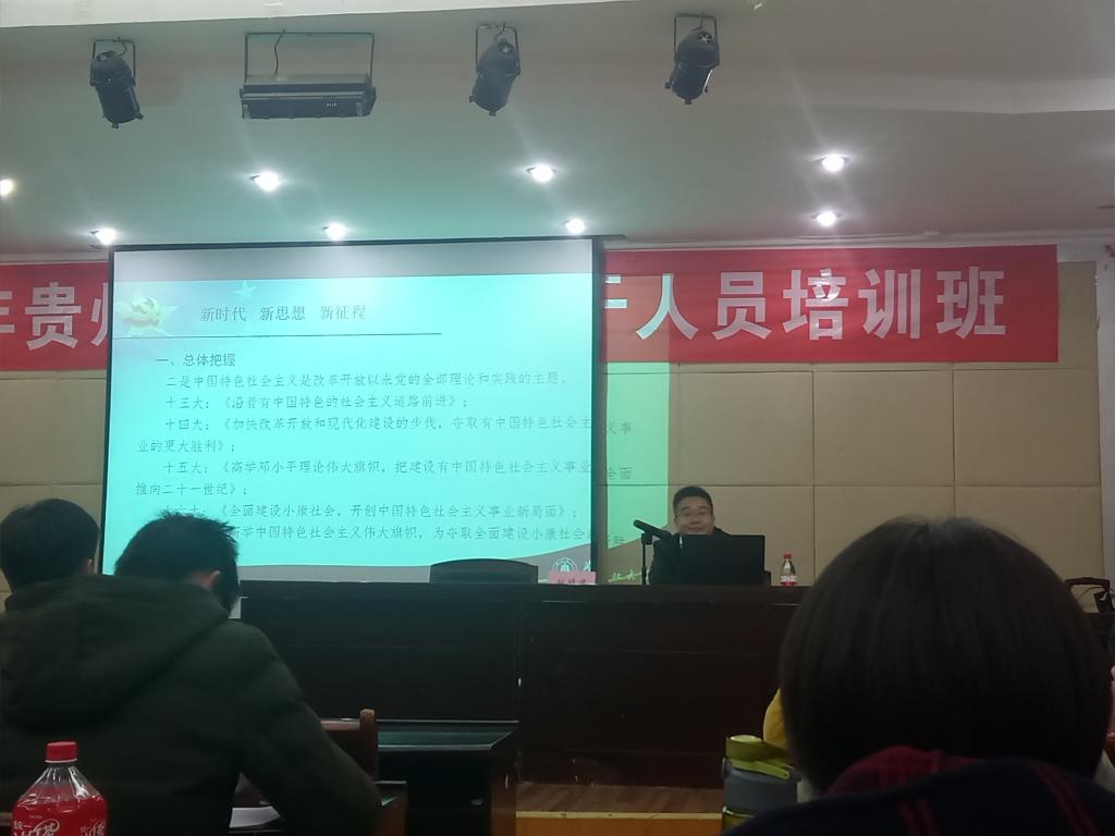 2017年11月27日晚上七点,校党委学工部部长刘靖君在数统院八楼,给数统学院第五期、计信学院第七期入党积极分子做了关于学习贯彻党的十九大精神的辅导报告。