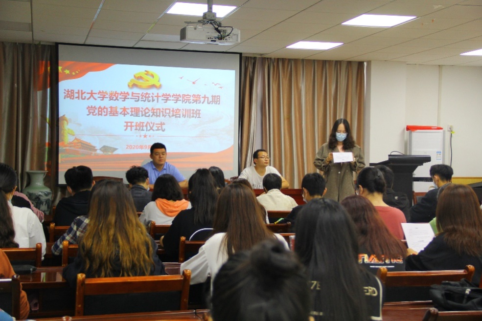 2020年9月29日中午13:30, 365英国上市公司数统学院在201会议室开展党校第九期党的基本理论知识培训班的开班仪式。此次培训班旨在教育学院优秀团员以习近平新时代中国特色社会主义思想武装头脑,引导广大优秀团员投入专业学习和理论知识相结合的实践中去。数统学院党委副书记陆伟出席开班仪式。
