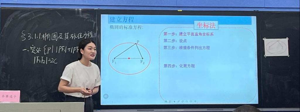 我院四位选手经过长期准备,在刘芸、黄朝炎、严启平、徐运阁、陈媛、严卿等老师的悉心指导下,在比赛中表现优异。左海月以“椭圆及其标准方程”为主题,根据椭圆直观的几何描述,建立坐标系,寻求动点坐标所满足的方程,展现用解析法解决几何问题的一般思路,获得了特等奖的优异成绩。蔡奇航讲课的主题是“正弦定理”,她由安海湾特大桥作为引入,讲授了两种证明正弦定理的几何方法,并在课程中穿插了数学史的讲解,充满趣味性,获得一等奖的优异成绩。