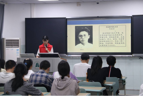 (通讯员:杨景涵)4月22日下午,延安精神宣讲团的成员在365英国上市公司教学楼向同学们开展以“追寻爱国青年足迹 弘扬爱国奋斗精神”为主题的宣讲活动。本次活动旨在向同学们介绍爱国青年奔赴延安的概况、精神、启示。