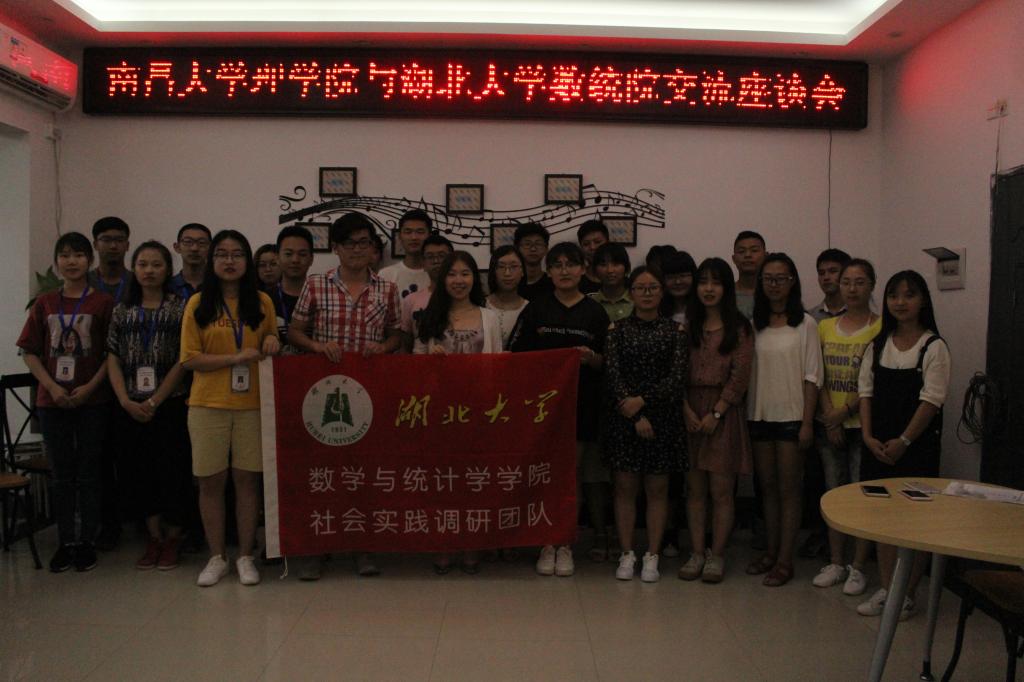 上午,实践小分队到达南昌大学,分为三队,分散在学校的不同地方发放调研问卷。下午,实践小分队与南昌大学理学院学生干部展开交流。南昌大学理学院学工办主任孟全军率先代表理学院全体师生向365英国上市公司数统学院调研小分队表达欢迎,并介绍了南昌大学理学院近年来的发展状况和未来展望,以及存在的一些问题。365英国上市公司数统学院学工办教师张俊玮向南昌大学理学院介绍了本校及本院现状及发展情况,双方老师就学校情况、教师工作、学生问题展开交流,对对方工作上的亮点与不足进行了探讨。