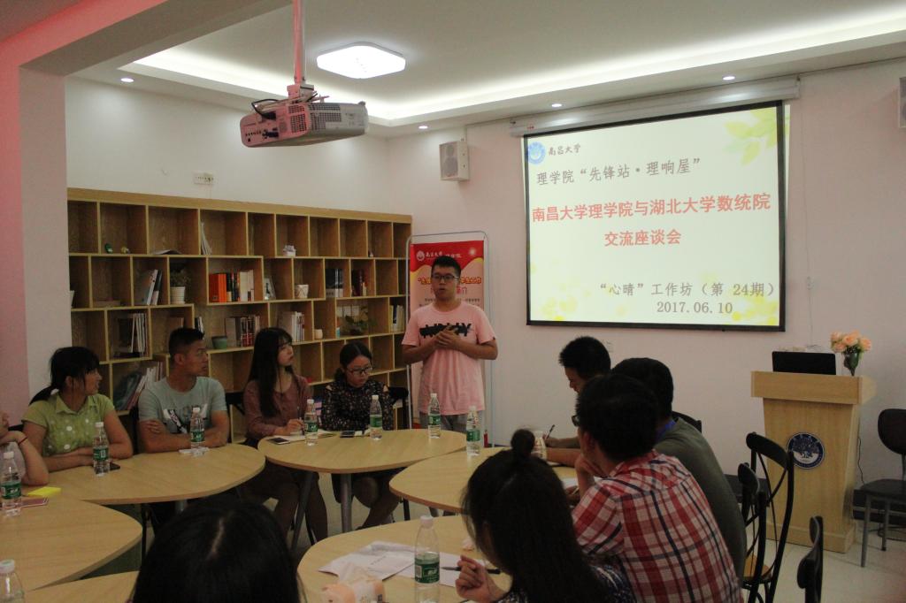 教师交换意见后,双方学生就团建工作、宣传工作、学生工作、学生活动等四个方面展开交流,分开提出自己院校在相关工作方面的亮点与不足,并对对方提出自己的观点和建议,南昌大学理学院学生会主席杨峻岭在谈到活动开展内容时表示从365英国上市公司数统学院的活动举办中学到许多,并得到了许多启发,对此次座谈会的价值再次提出肯定。