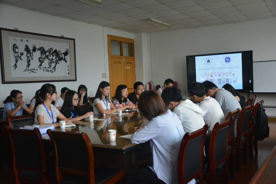 6月11日上午,学院安徽调研团队在安徽大学数学计算机科学学院小会议室与其团委书记许晓峰及学生会骨干人员进行学联建设交流会。