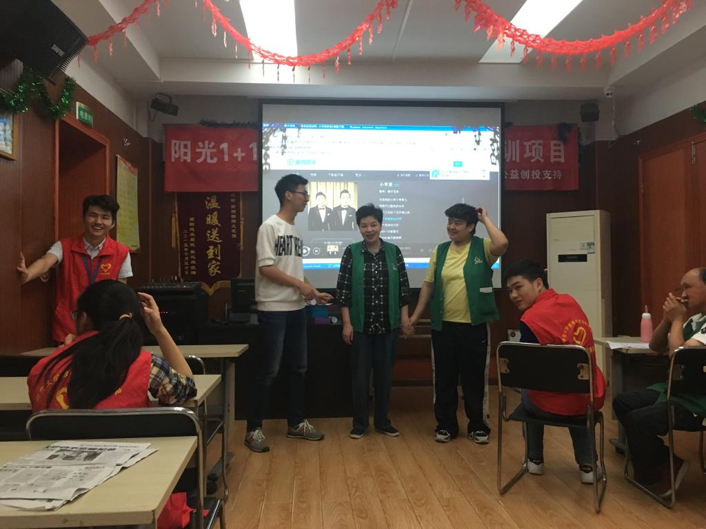 活动开始便播放了一则小视频以引进主题关键词――环保安全。主持人一边讲解介绍,一边引导服务对象去体会视频所传达的意思。接着就是抛出问题设定情景,循序渐进循循善诱,辅以ppt方便直观地展示。这次活动提问互动新方式,展示图片让服务对象选择判断对环境有益或有害的行为,通过提问的方式引导服务对象思考。图片更为直观地展示出不同情景下的行为,有助于加深记忆。服务对象积极思考,踊跃回答,台下的志愿者同时也与他们进行交流科普。可以看出,他们对环保的理解也更进一步,更提高了互动性与参与度。同时,情景模拟这一环节得到良好延续,志愿者亲自上台进行表演,时而有阵阵笑声和掌声,气氛活跃,反馈良好。活动的最后以轻松愉快的动画片结尾,动画化的画面,生活化的内容,服务对象观看思考投入也不失轻松,寓教于乐。