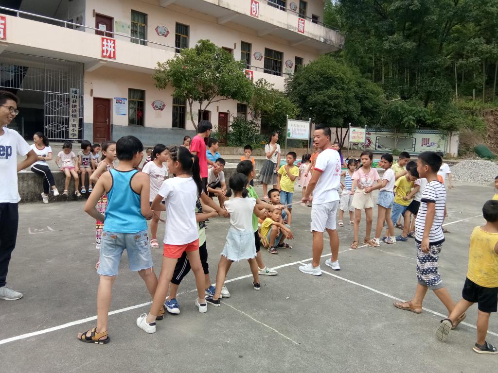 下午,周杰老师在小书童的带领下参观了宿舍,厨房,更加深入地了解了小书童的住宿情况,还与小书童们一起交流现阶段教学的具体进度与成果以及对教学模式的进一步的完善。教学工作汇报完成之后,周杰老师同小书童们一起参加运动会。“搭桥过河”比赛在如火如荼的进行中,周杰老师被孩子们热情所打动,用相机拍下孩子们最美青春的瞬间;跳绳比赛中孩子们用跳跃的身影折射出童年最优美的姿态,引发老师们对逝去童年的怀念与感慨。