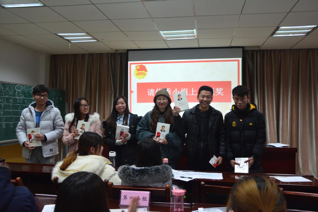 接下来便进入到了本次活动的小组协作,共同学习一篇有关改革开放的时评——庆祝改革开放40周年-历史巨变从何而来(节选)。学习过程中大家热情高涨,气氛热烈。8个小组又各派代表进行讲解知识脉络图。学习分享过后开始本次团日活动的最后一个环节,改革开放知识竞答。小组成员们通力协作,题型包括单选题,多选题,判断题,填空题。一轮过后成绩最优的两组又进行了决胜PK。17应数的柴孟岑谈到:“后面加入的比赛环节,更加深入的了解了改革开放时期的重大变化。”17信科的团支书同时也是最终冠军小组的成员杨庆伟说到:“活动中各团员都能做到积极学习,认真观看相关视频,组里讨论踊跃发言,参与度很高。活动中活动形式也很多,结合PPT的讲解,观看视频为辅,小组讨论展示,知识竞答更是达到了活动应有的效果。”获胜小组每人获赠了一本《习近平谈治国理政》,希望大家可以将这种思想传递下去。