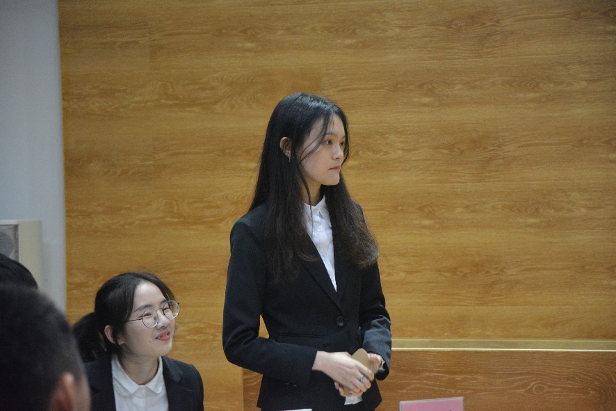 双方辩手在立论,驳立论,智辩等各个环节中思路清晰、妙语连珠,引用成龙,杨幂等明星以及《流浪地球》、《战狼2》等影片来论证自己的观点,当正方四辩以“那么你认为限酬令的意义在哪里呢?”质疑反方一辩时,她迅速地回答“没有意义。”将本场辩论推向了第一个高潮,观众们频频点头。