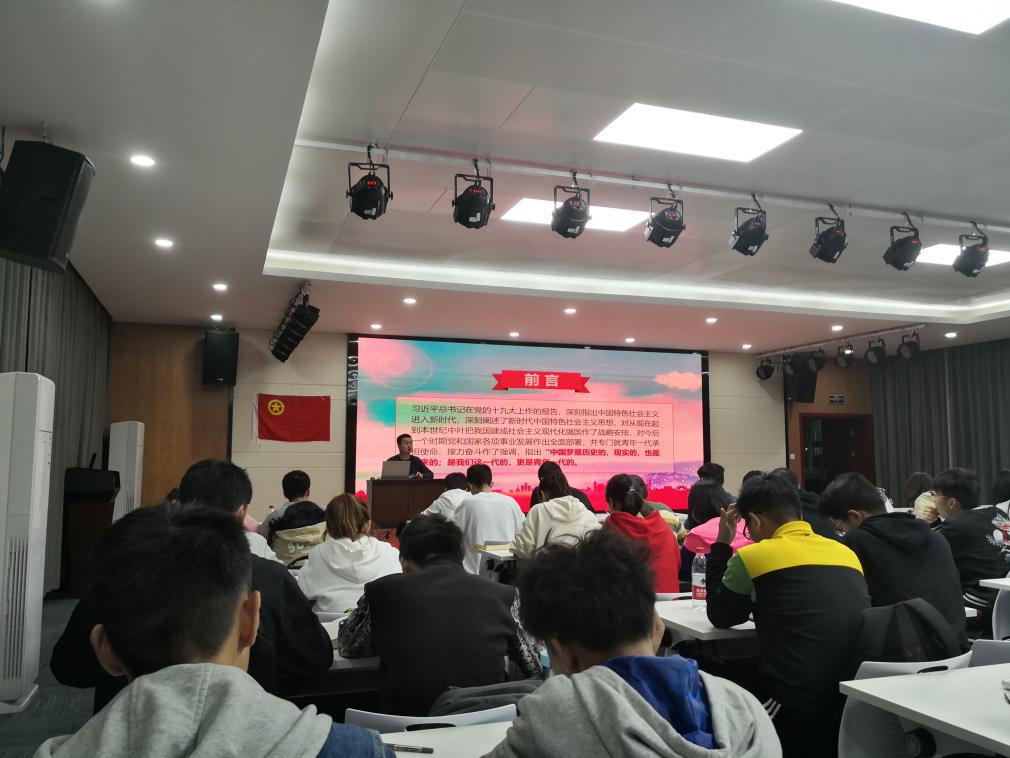 开班典礼结束后,周杰老师为入党积极分子带来了团课的第一讲——如何做新时代合格团员。周杰老师通过引入习近平总书记在党的十九大中做出的报告,强调“中国梦是历史的、现实的,也是未来的;是我们这一代的,更是青年一代的”。青年人要有自己的担当,要不断提高思想觉悟,做合格团员,做合格党员。在接下来的讲课中,周杰老师从四个方面带领各位入党积极分子深刻认识了共青团,并且学习了如何成为一名新时代合格的共青团员。在谈到对共青团员的认识时,周杰老师特别指出了以下方面:要有坚定的共产主义理想和信念,要有优秀的品质和道德,要有品学兼优的素质和扎实的文化基础,要成为学校学生中的表率和楷模等。空谈误国,实干兴邦,作为新时代的新青年,应牢固树立新思想,时刻牢记新使命,刻苦锤炼新本领,奋发展现新作为。