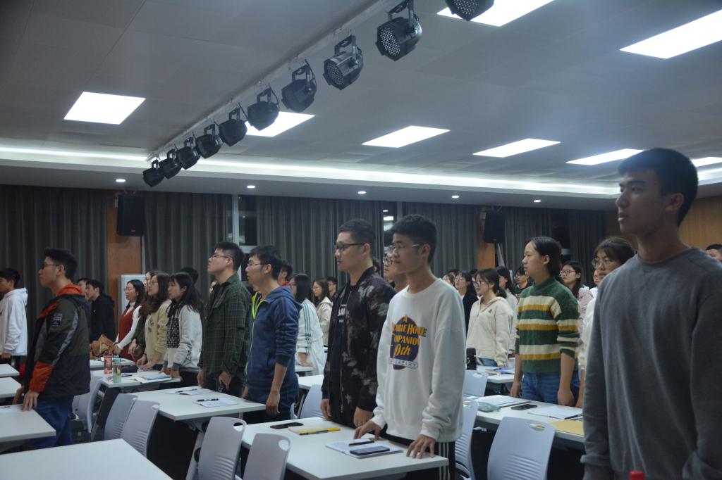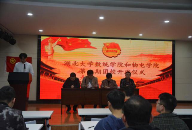 我院第八期团的基本理论知识培训班开班典礼于2019年11月13日下午18:30在英国365集团八楼进行。数统学院党委副书记陆伟,物电学院党委副书记王晓玲,数统学院团委书记周杰、物电学院团委书记袁勋以及数统学院、物电学院的入党积极分子和新推荐团员参加此次仪式,此次仪式由团校学员樊家豪主持。