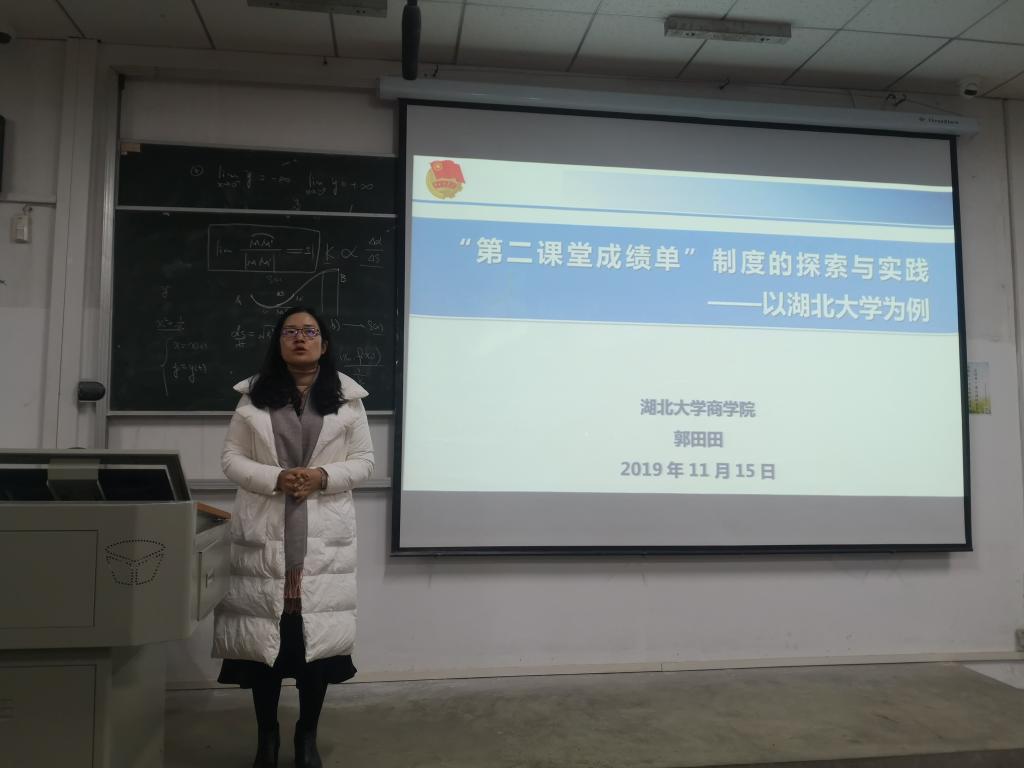英国365集团第四期团课学习于2019年11月27日下午18:00在教三302教室进行。本次由商学院郭田田老师为大家上课,主题为“第二课堂成绩单制度的探索与实践”。