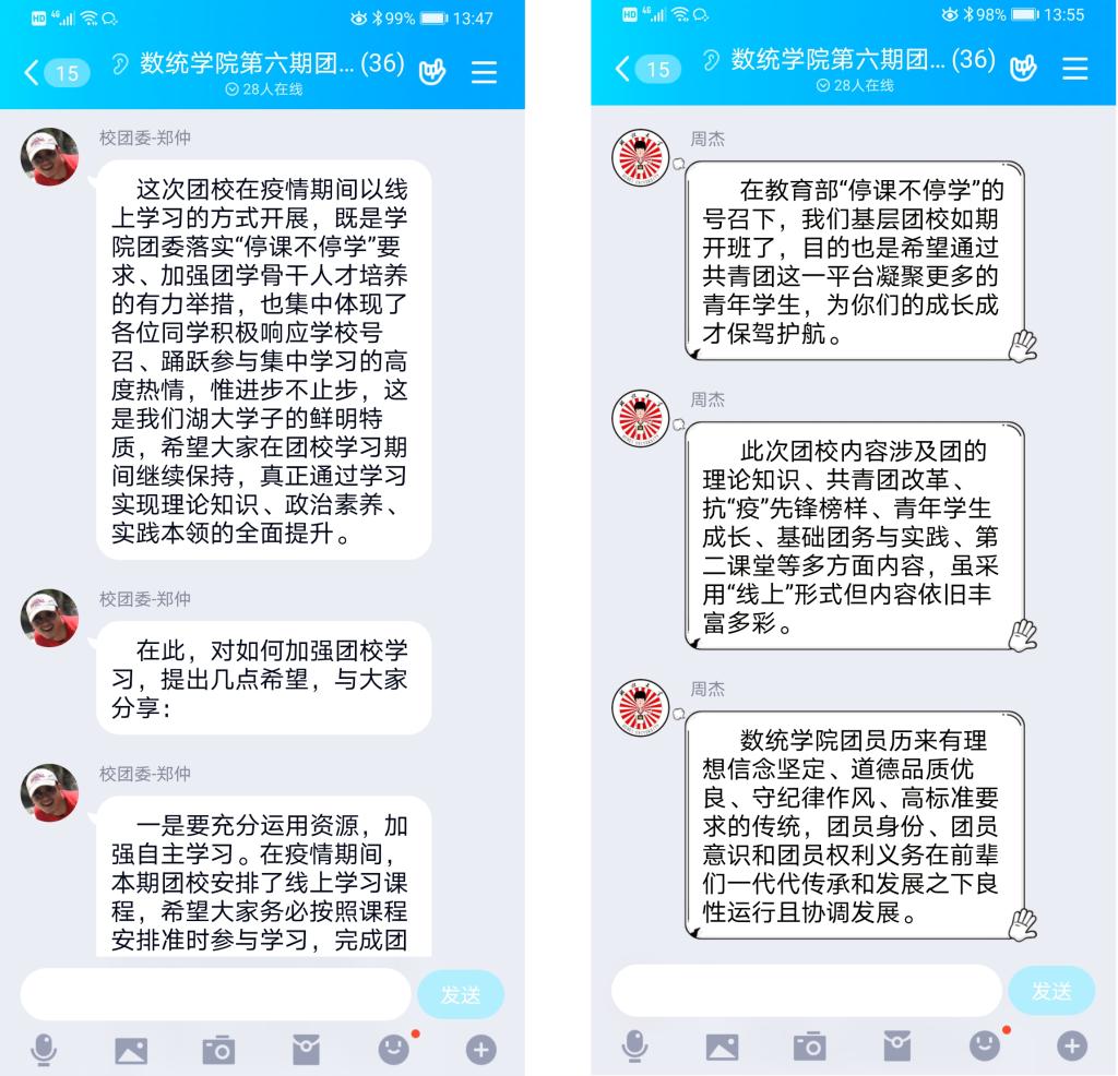 受疫情影响,本次开班仪式以QQ群线上图文交流的方式进行,数统学院31名团校学员准时参加。同时,365英国上市公司团委副书记郑仲、数统学院党委副书记陆伟、数统学院团委书记周杰出席开班仪式,仪式由院团委组织部陈溢纯主持。