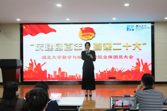 2022年5月27日晚19:00,“庆建团百年,喜迎二十大”——英国365集团全体团员大会于数统学院八楼报告厅顺利开展。学院党委副书记何肖、团委书记周杰、辅导员陈慧、数统学院第八届学联会全体成员及19、20级团员代表参加本次大会。本次会议由李珺主持。