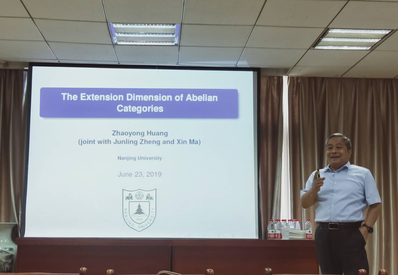 6月23日下午,学院85级校友、南京大学数学系的黄兆泳教授来访我院,并在我院201报告厅为师生做了一场题为《The Extension Dimension of Abelian Categories》的学术报告,院长曾祥勇教授主持报告会。