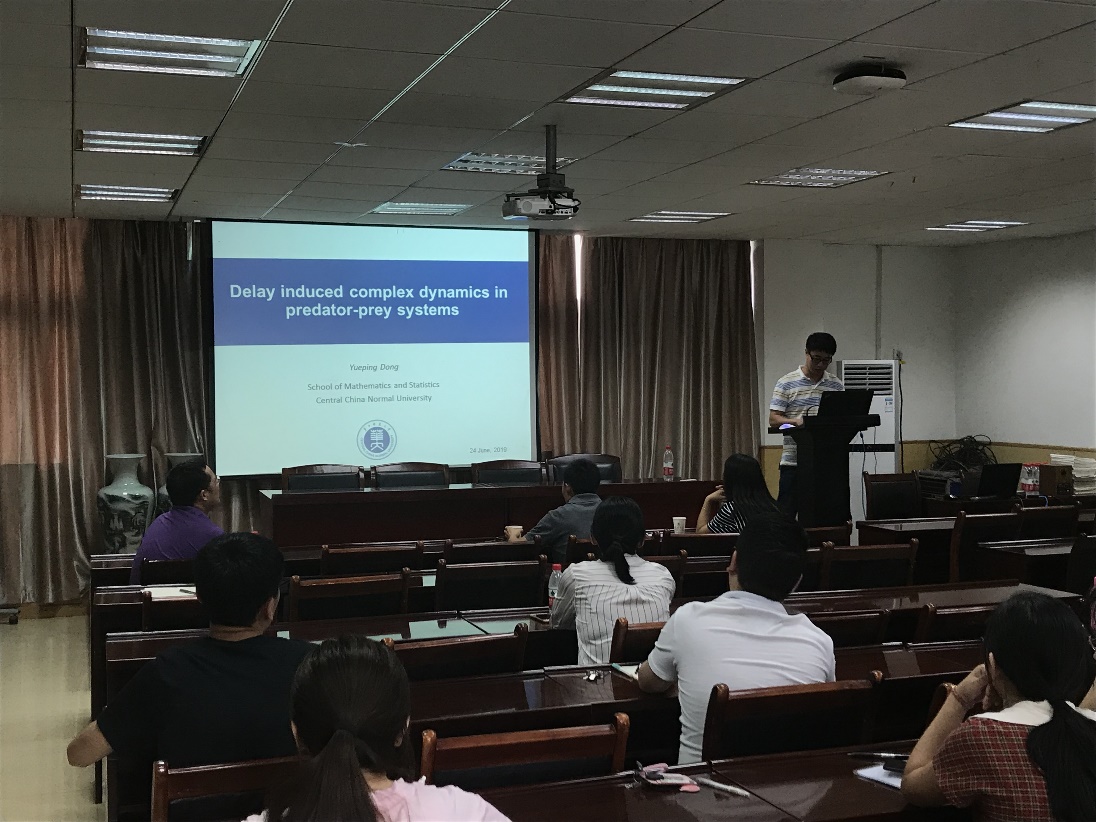 2019年6月24日下午,数学系96级校友、中国地质大学(武汉)付丽华教授和华中师范大学董岳平博士应邀来访我院,在院201报告厅为相关师生分别做了题为《基于深度学习的地震数据重建方法》和《Delay induced complex dynamics in predator-prey systems》的学术报告。