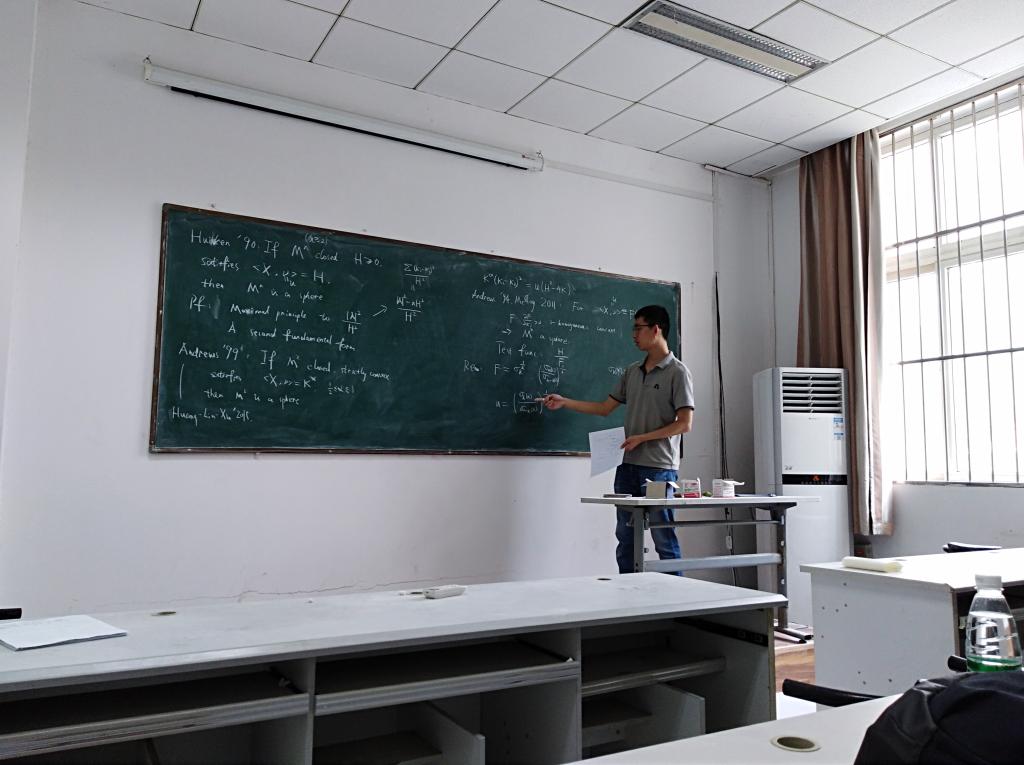 7月13日上午,学院07级校友、中国科学技术大学高山泽博士应邀来访我院,在院107教室为相关师生做了题为《曲率流的自相似解的唯一性》的报告。