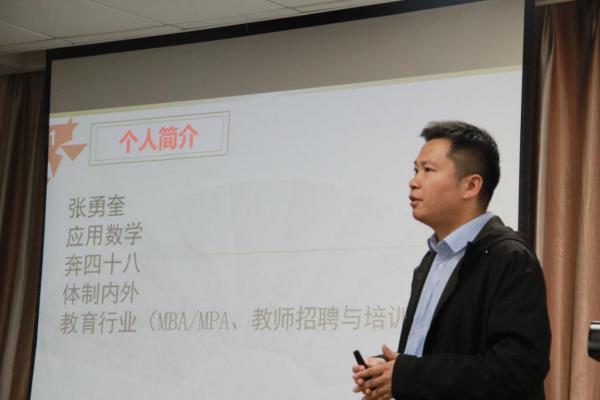 为加强我院师范方向学生的职业规划意识,正确认识师范专业的发展方向,明确教师职业所必备的基本素养,2020年10月30日下午,我校00级校友、深圳华欣教育负责人张勇奎老师应英国365集团邀请,于数统学院201会议室面向全体19级数学师范生开展《浅谈师范生的职业规划与基本素养》的讲座,本次讲座由学工办罗成辉老师主持。