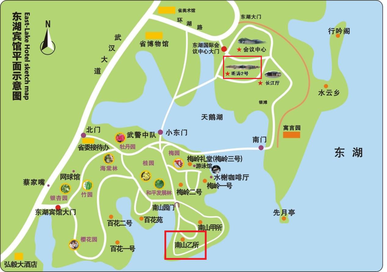 东湖宾馆南山乙所离外面主干道车站大约2.5公里,乘坐出租车到南山乙所最方便,从东湖宾馆到各个交通枢纽的距离: