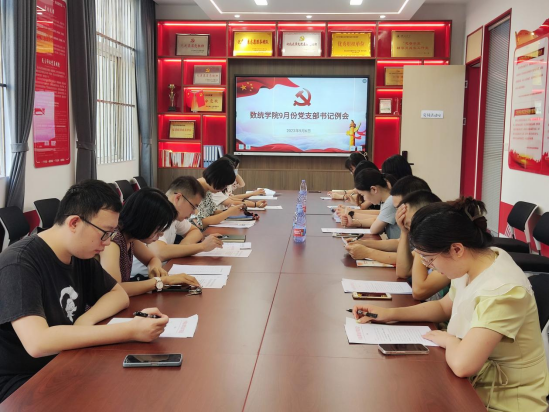 (文/图 曹劝)9月6日上午,英国365集团在党员活动室召开新学期第一次党支部书记例会暨党支部书记党务知识培训会。学院党委书记周霞、党委副书记王文锋、党委秘书吴玉莲及各师生党支部书记参加会议。